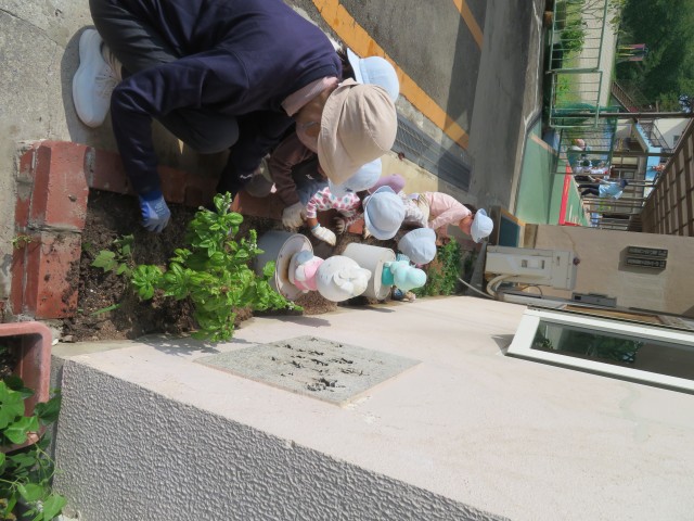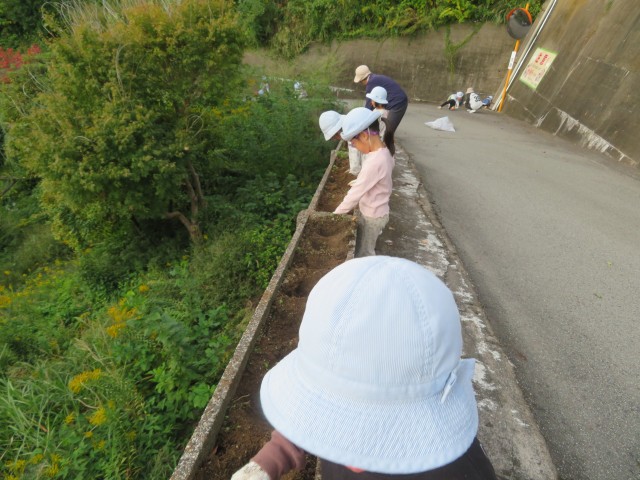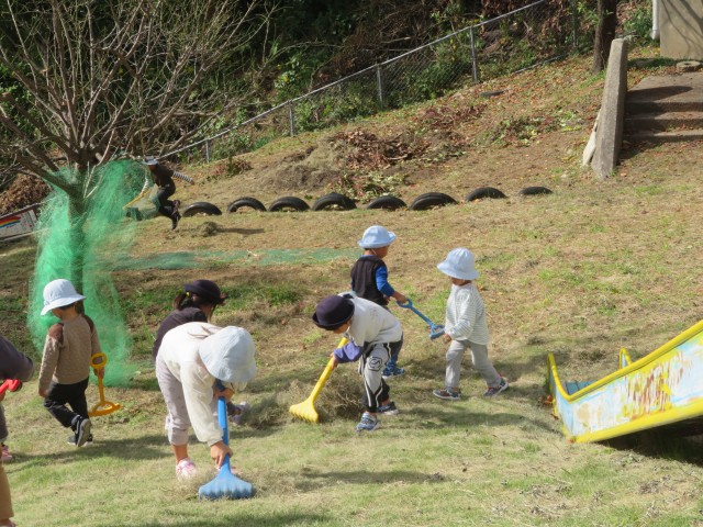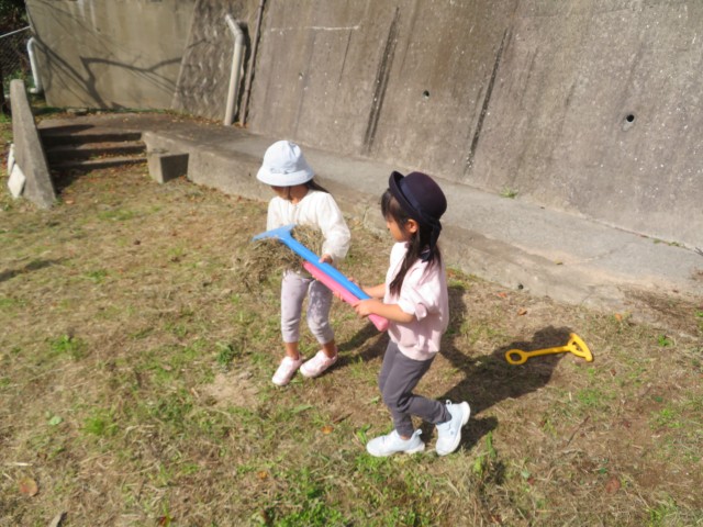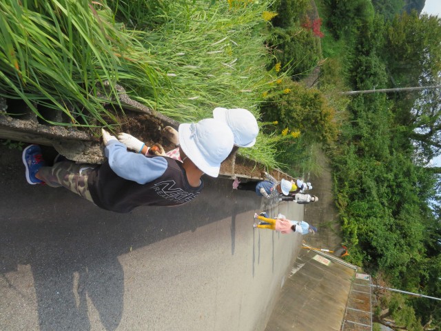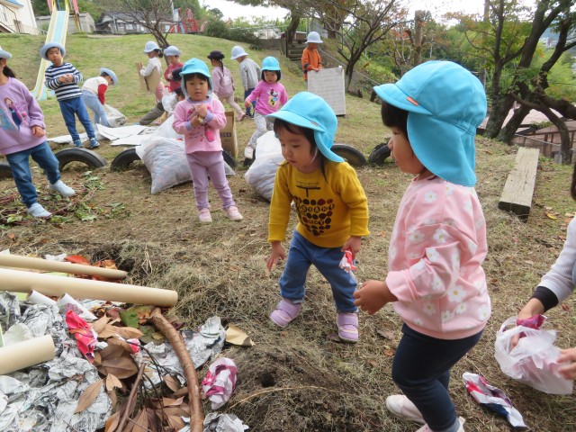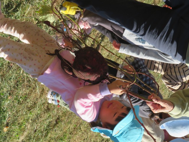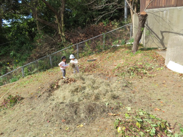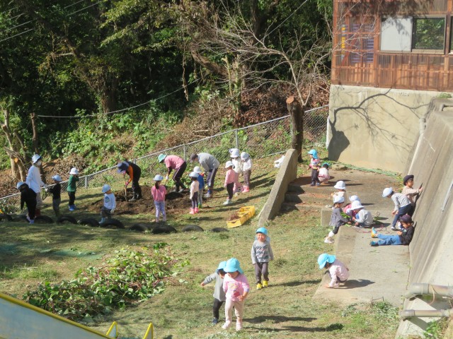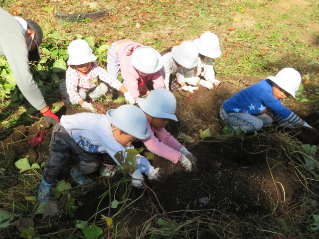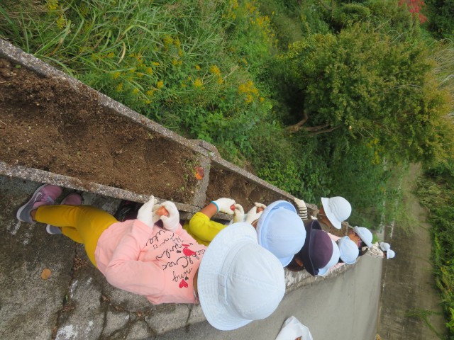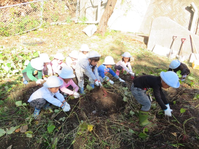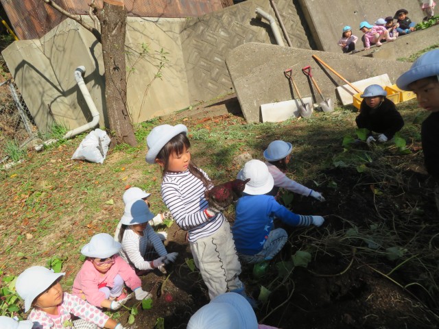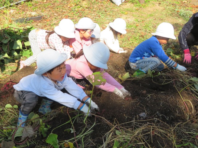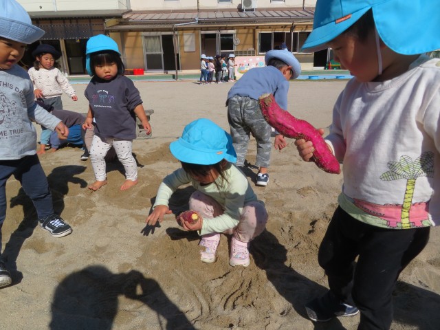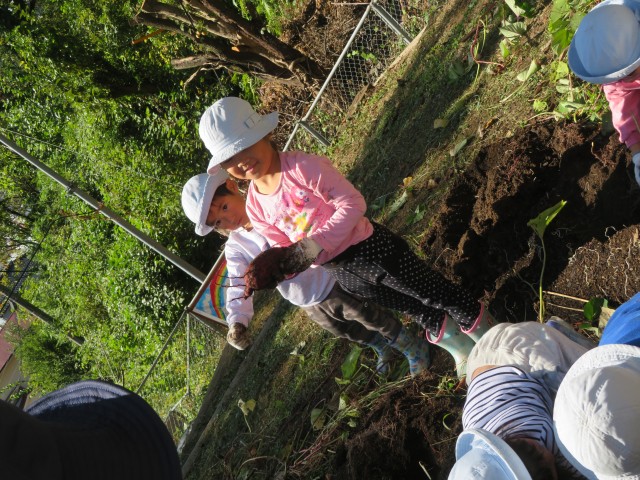 畑に大きな穴を掘って、11月にはみんなで焼きいもにして食べたいと思います。(*‘ω‘ *)