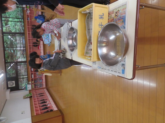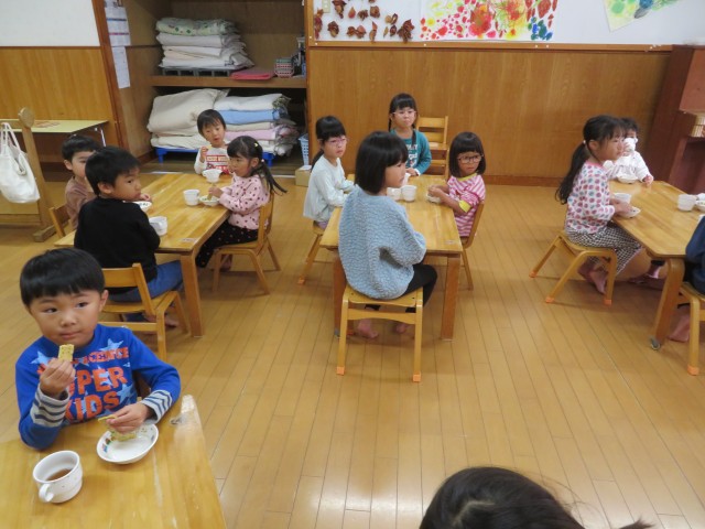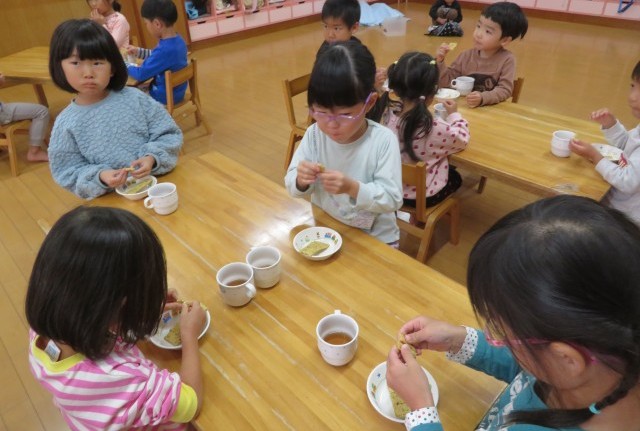 「みんなで食べると美味しいね」 おいもが苦手な子もおかわりをしている様子が見られました。