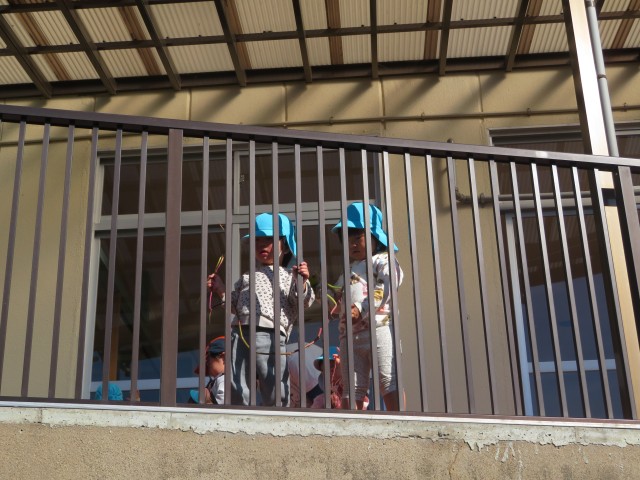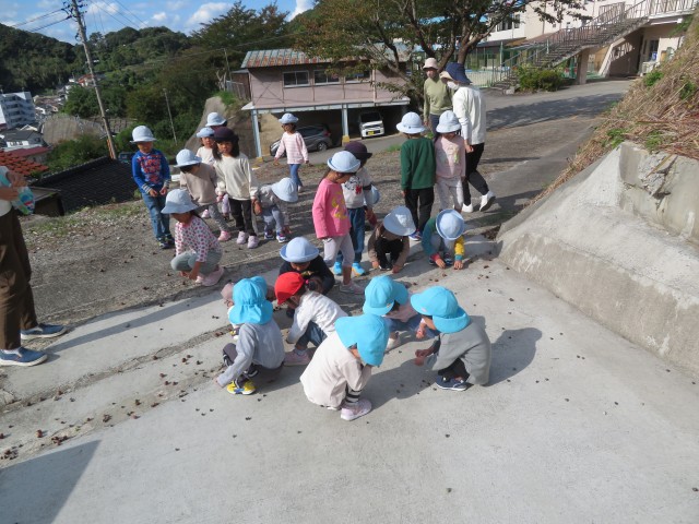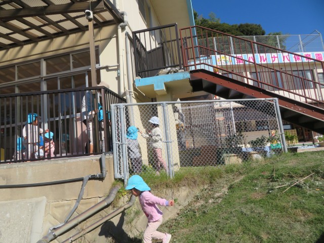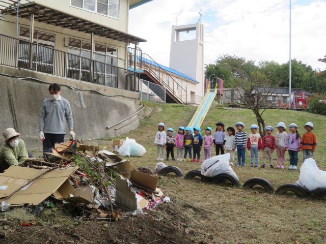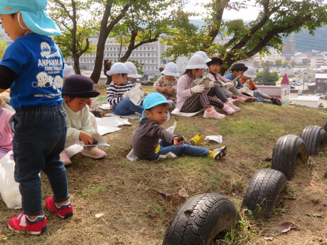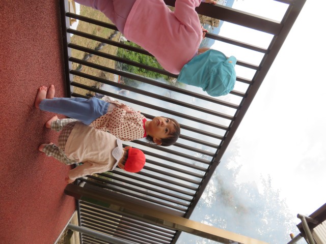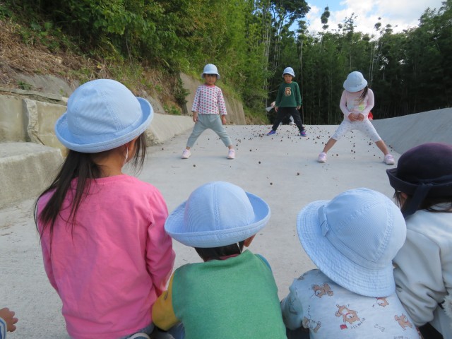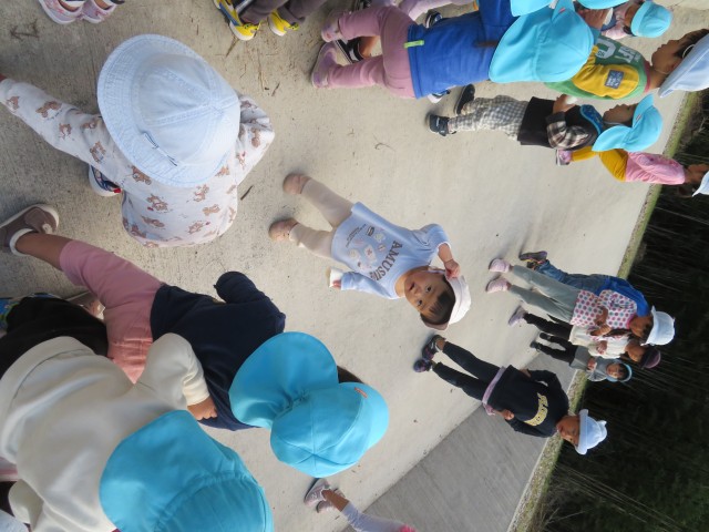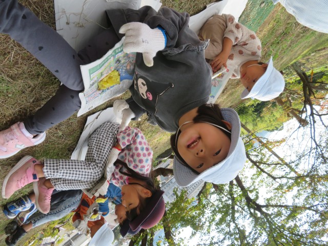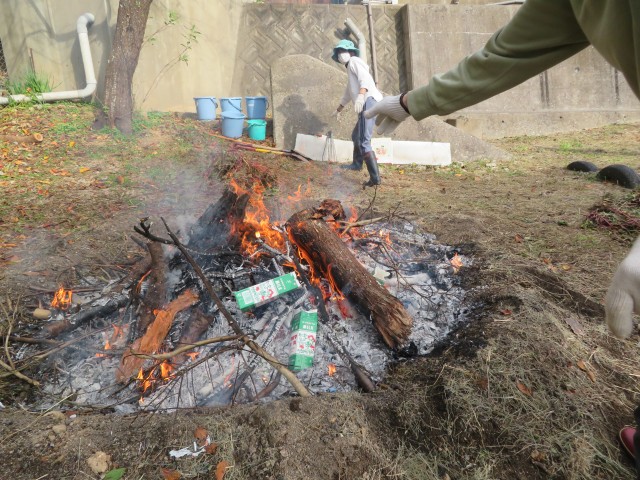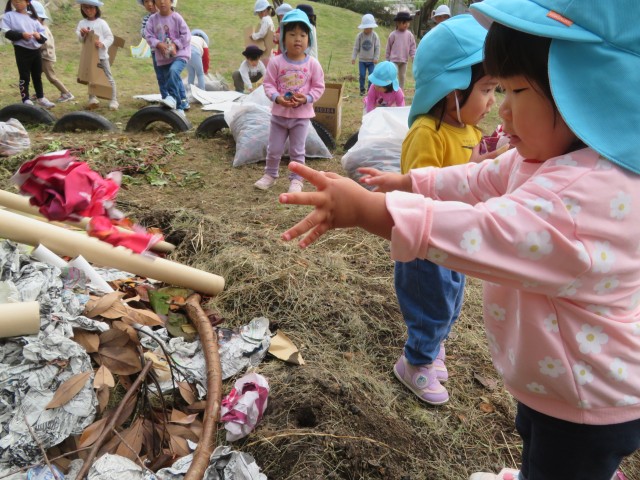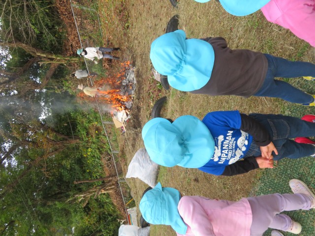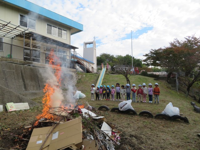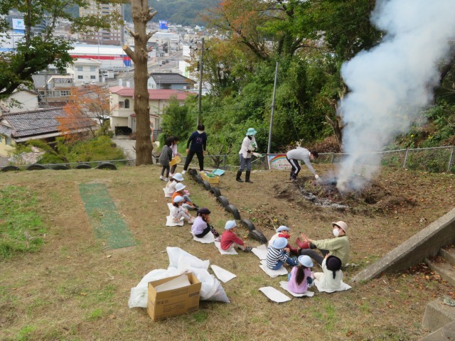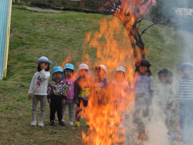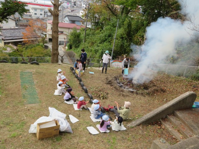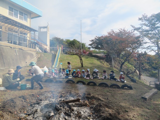 暖かい日差しの下、風もほとんどなく絶好の焼きいも日和⁉。気持ちよく活動ができました。煙のにおい、火の熱さ、色など間近で感じることができました(⌒∇⌒)